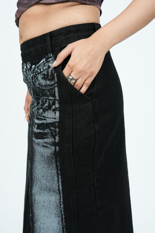 Regular price Rs. 2,500.00Regular priceUnit price / perSale price Rs. 2,500.00Haunted denim skirt - Black