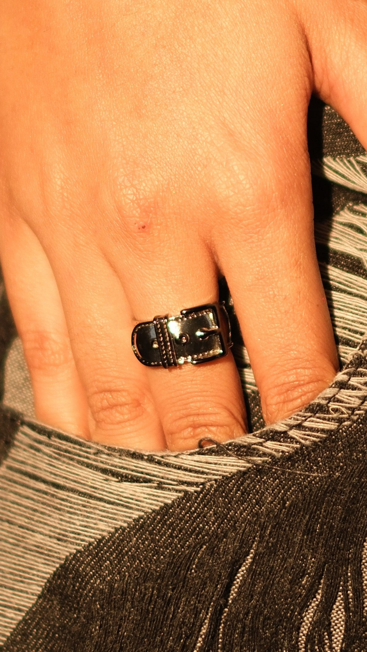 A belt for your finger. A statement that locks in—sleek metal, bold hardware. Tight, untamed, and ready to hold its ground. Fully adjustable because the best fits are the ones you make your own.
