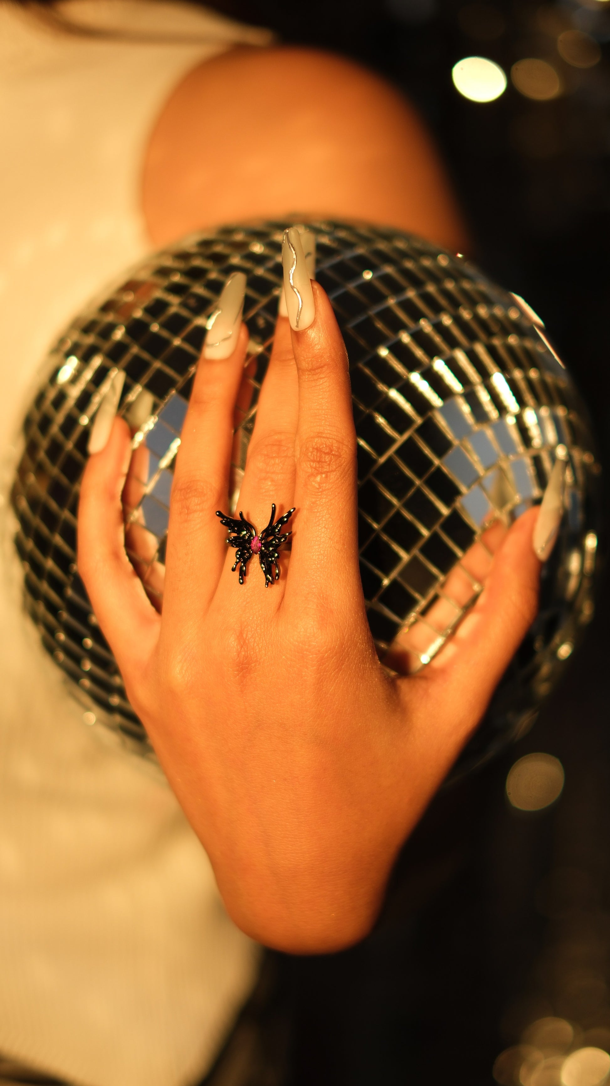 Not your basic butterfly ring—this one’s got a dark side. With dripping black wings and a deep magenta core, it’s giving transformation, rebellion, and a little bit of danger. Adjustable for whoever dares to wear it. Spread your wings… or don’t. Either way, you’ll turn heads.